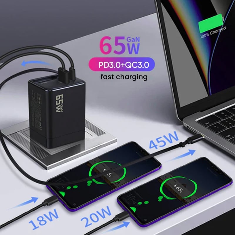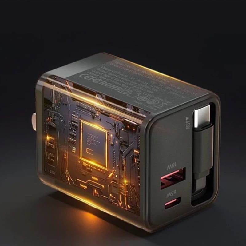 This 3-in-1 retractable charger is the ultimate portable solution. It combines 65W fast charging and three versatile ports in a compact, travel-friendly wall plug. It provides maximum convenience and safety for all your electronic devices, enabling effortless and organized charging on the go.