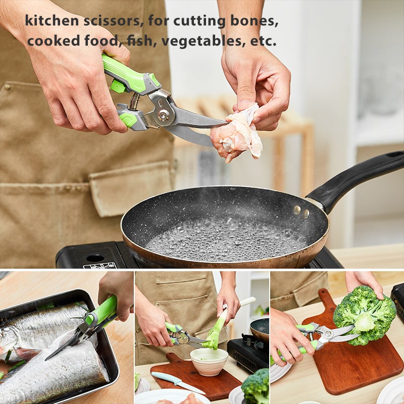 • Kitchen scissors: Kitchen scissors, used for cutting bones, cooked meat, fish, vegetables, etc.