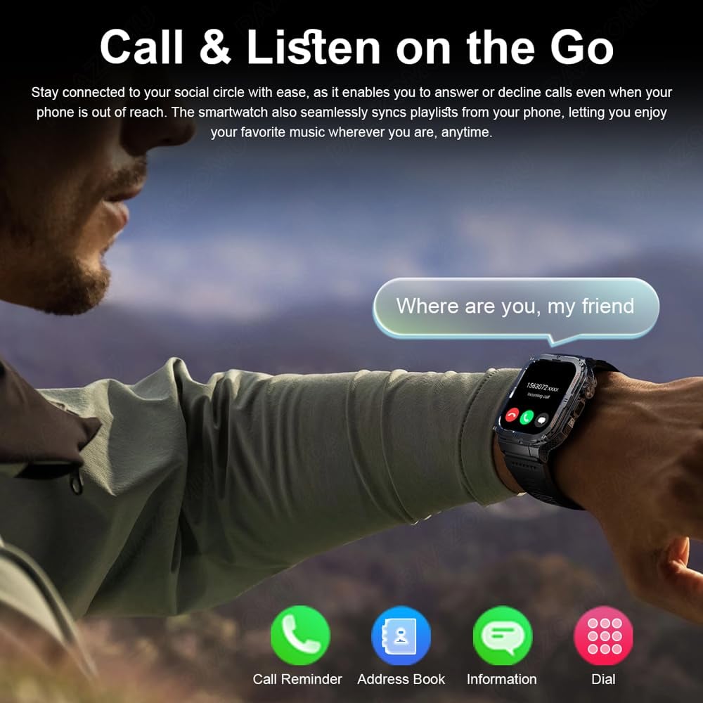 • IP68 waterproof and military standard – built with a rugged composite metal case and dual-injection molded plastic back. passes military-grade tests for durability in tough environments and is waterproof up to 3atm, suitable for various outdoor conditions.