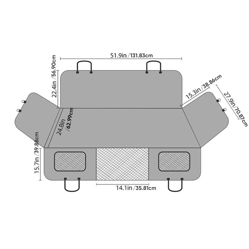 - Universal adaptation to multiple vehicles: Designed to fit a wide range of rear seat sizes and designed to fit most cars, trucks and SUVs. The back seat pet cover for dogs expands to 60.5 inches long and 51.1 wide inches deep to completely cover the rear area, giving your dog more room to move around, and relieving their anxiety during long car trips. Perfect for large dogs, backseats in multi-dog households.